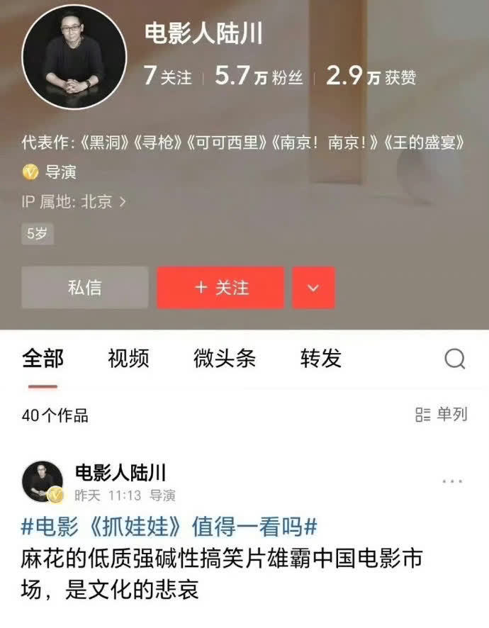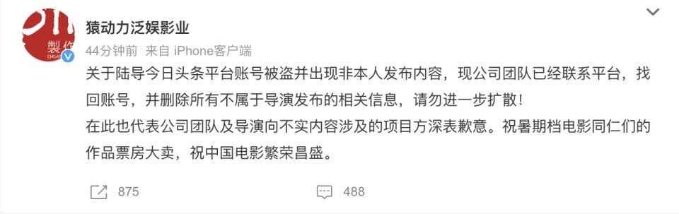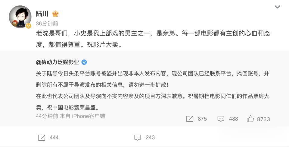 但又与冯小刚不同的是,陆川是敢批不敢认,一度亦然辩说了所批言论,更是找了个盗号的借口,截至是惨遭打脸。