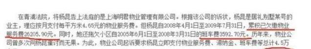 更让东说念主没念念到的是,再次看到她的音书是在2009年,原因竟是拖欠物业费筹画4.5万元,被物业公司告上了法庭。
