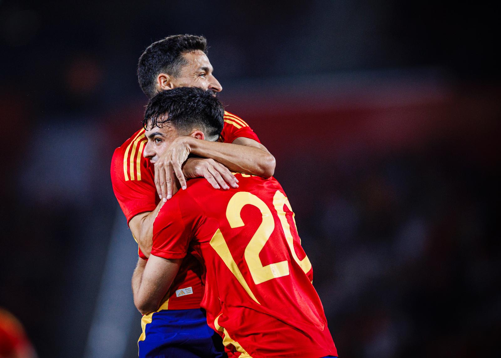 这场比赛西班牙派出大部分的主力球员,在4-3-3阵型当中,乌奈-西蒙回到首发位置,为斗牛士把守球门。38岁的纳瓦斯力压卡瓦哈尔,跟纳乔、勒诺尔芒和库库雷利亚镇守后防,中场三东谈主是佩德里、罗德里以及法比安-鲁伊斯。莫拉塔司职中锋,亚马尔和尼科-威廉斯分居两侧。
