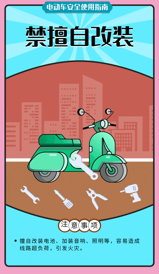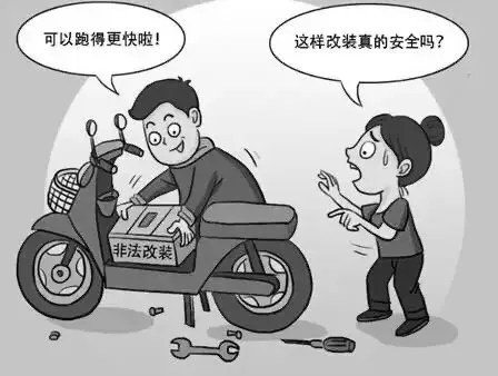 对电动车进行改装将导致整车分量改变,从而影响操控性能和制动性能,改装破除限速后,超速行驶极易失去戒指,发生交通事故。