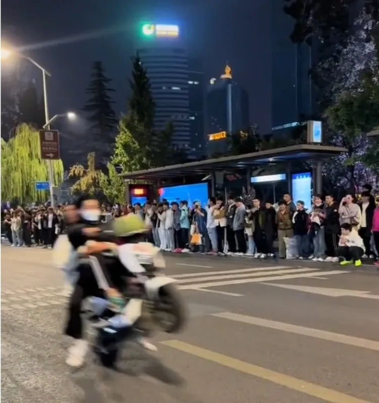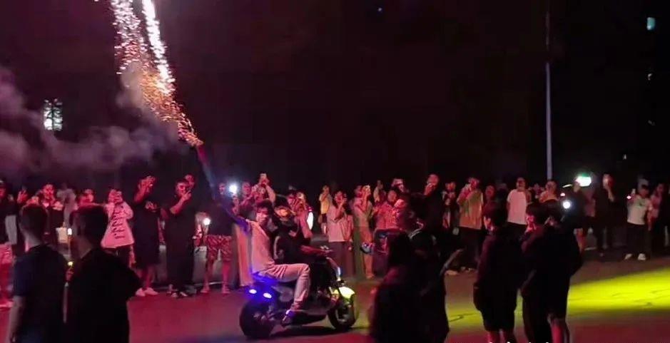 视频自大,有东谈主戴上头具,有东谈主手持“加特林”烟花;有东谈主爬上公交站顶棚,狂欢舞蹈;还有东谈主骑着电动车“翘头”“飙车炫技”,把谈路变成竞技场。有东谈主因为速渡过快,来不足刹车,追尾后跌倒在地。轰鸣声、大叫声、音乐声接续,引来不少市民围不雅。
