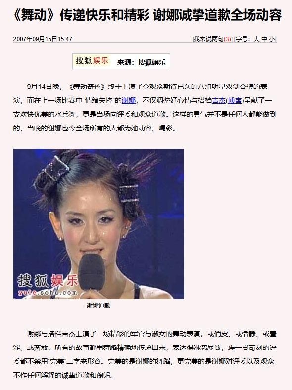 她与吉杰组合取得全场最低评分,评委周志坤指出跳舞节拍絮叨、编排欠佳。