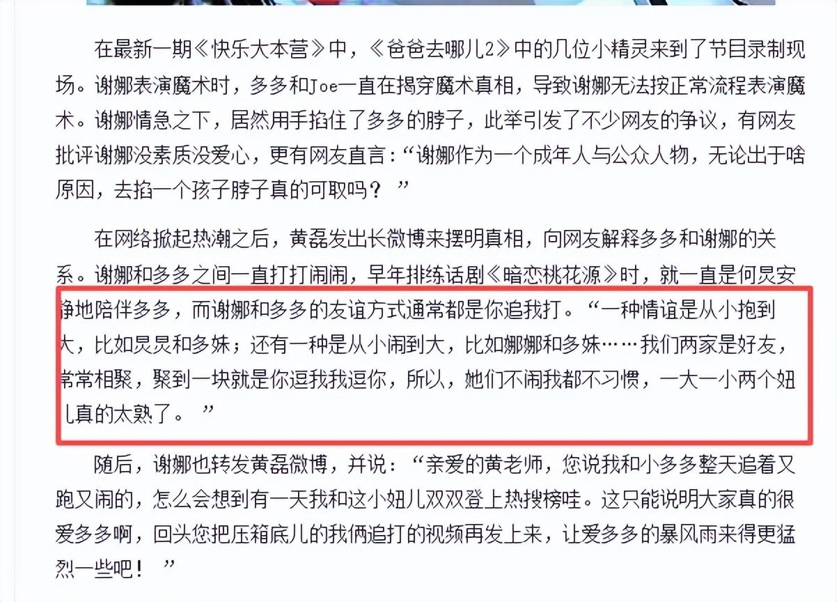 尽管黄磊随后发布长文流露,强调两家关系亲密,儿子更是从小与谢娜嬉戏打闹。