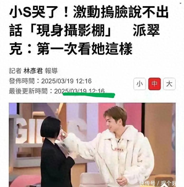 在照相棚内小S情状很好,莫得媒体说的憔悴,与嘉宾互动安闲,笑的异常欢快。但不知怎么的又瞬息哭了起来。助理说第一次看到小S这样。