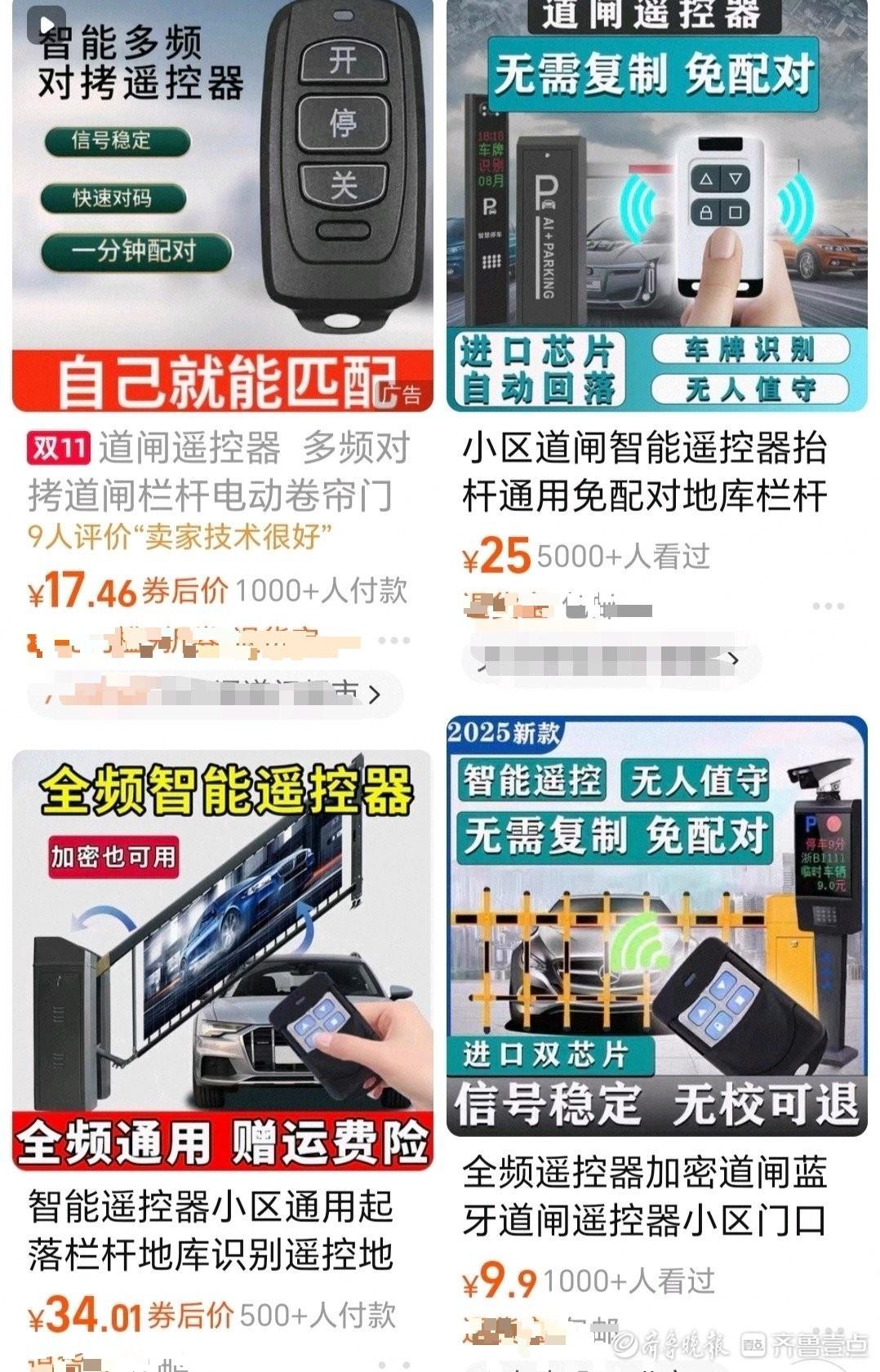 近日,济南市民王女士发现,网上有售卖“全能遥控器”。商家称,不错一键开放车库谈闸、起落杆以及卷帘门等确立。这种“全能遥控器”情况何如?对此,记者开展拜谒。